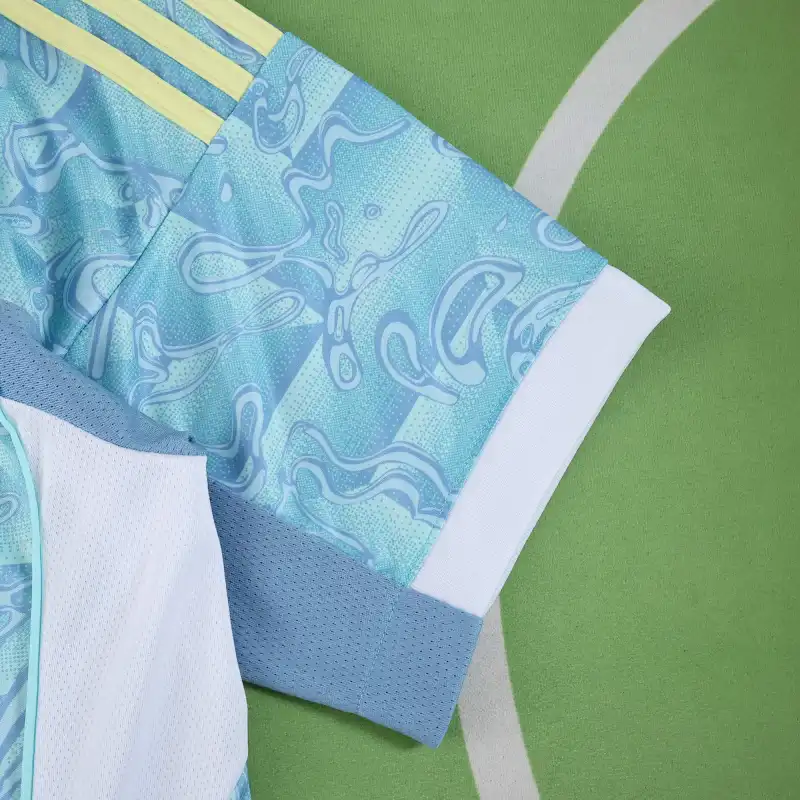 La Juventus Away 2025/26 combina tonalità azzurro pastello con dettagli bianchi e gialli, per creare un design fresco, moderno e immediatamente riconoscibile.