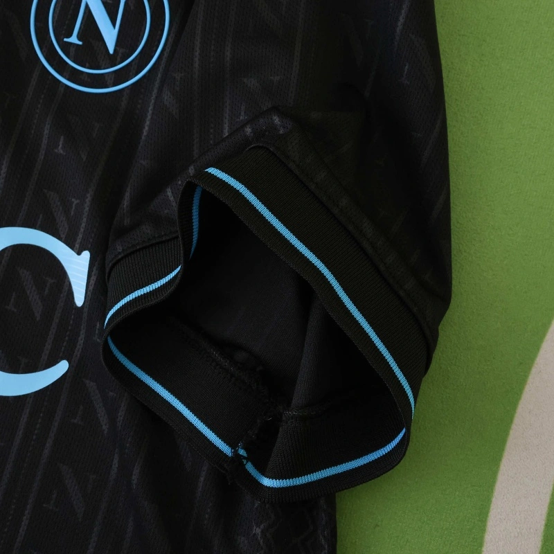 La Third “Moka” 2025/26 unisce un design urbano a dettagli ricercati, come il pattern con la “N” napoleonica integrato nel tessuto e lo scudetto tricolore al centro del petto.